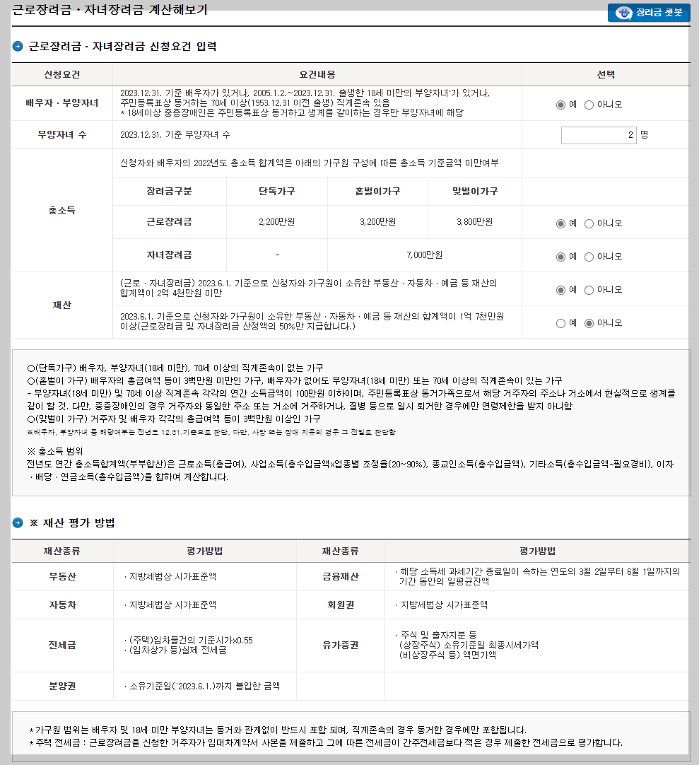 근로장려금 계산기/계산방법