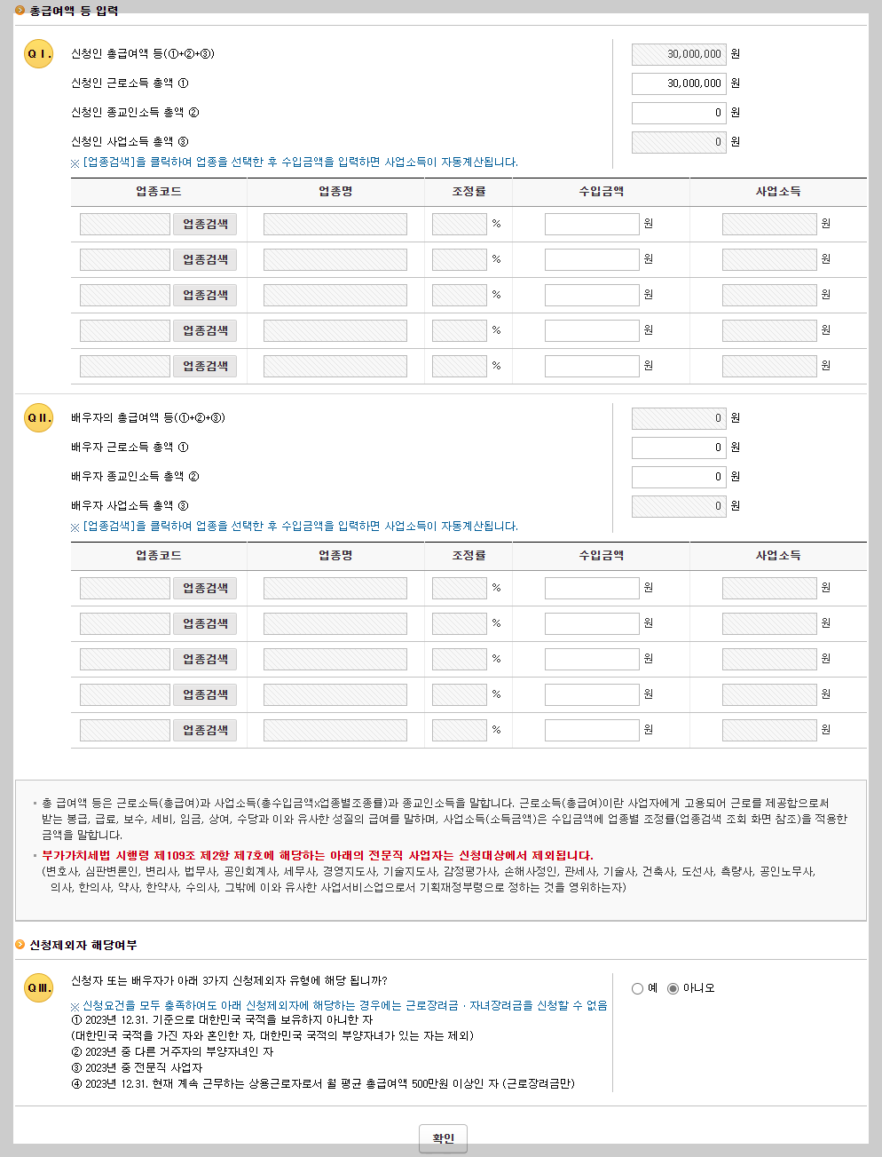 • 맞벌이가구 : 배우자의 총급여액이 3백만원 이상인 가구
