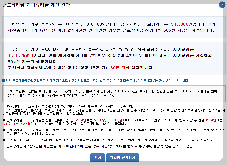 👆근로장려금 계산기
